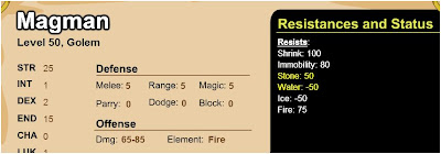 - Fragilidades: quando nos stats dos inimigos o numero do elemento é negativo (possui um "-" na frente), o ataque com esse elemento dará um dano maior de acordo com o numero.